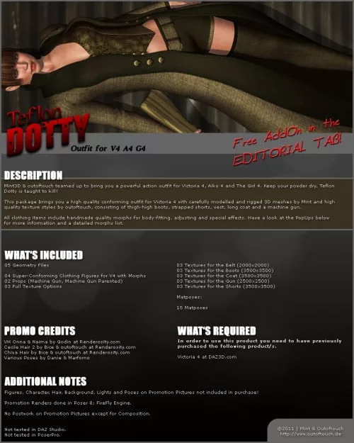 Teflon Dotty for V4 A4 G4 August 14, 2013Ikari 5373 DAZ | Poser,Clothing & Accessories Victoria 4, Aiko 4, The Girl 4