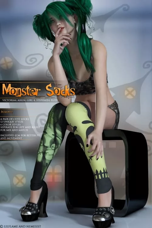 Monster Socks October 15, 2013Ikari 5373 DAZ | Poser,Clothing & Accessories Victoria 4, Aiko 4, The Girl 4, Stephanie 4